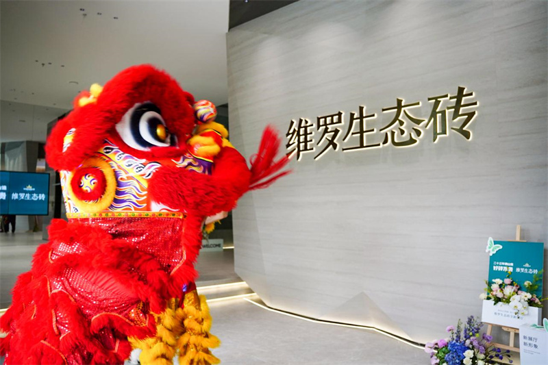 在熱烈的掌聲與喜慶的醒獅鑼鼓聲中,羅董事長與核心經(jīng)銷商代表共同為維羅生態(tài)磚總部展廳剪彩。紅色綢帶落下的瞬間,標(biāo)志著全新美學(xué)展廳正式煥新啟幕?,F(xiàn)場禮花綻放,雄獅舞動,人聲鼎沸,進(jìn)一步把活動氣氛推向高潮。
